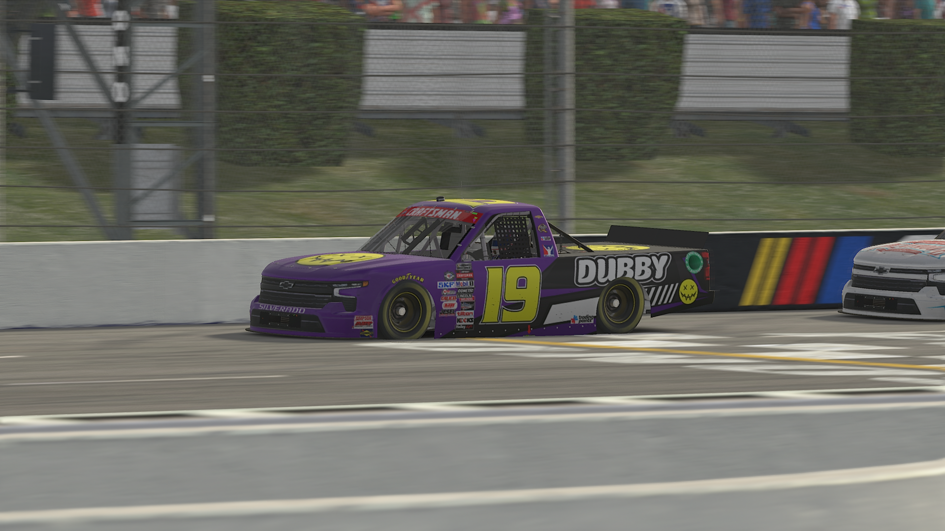 On Lap 31, Domenic Previte would find himself spinning again in turn three off the nose of the #29 Chevrolet Silverado of Joshua Thornton. Thornton who was in fourth at the time of the incident would send it hard into turn three seeing that Previte had lost second place to Mychael Miller on entry and tried to jump into a space that wasn’t quite there. The contact caused Previte to spin and make contact with the outside wall.